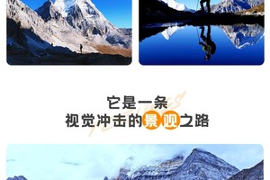 惊艳——全国热门摄影、探险线路之一,探险挑战神秘。 奇特——粗犷豪放的康巴汉子,能歌善舞的嘉绒娃,碉房式的民居,蓝天白云下成群的牛羊,海拔3000米以上的小桥流水人家。 美丽——领略滇西北、川西高原和青藏高原东端雪山、草地、森林、峡谷、河流、温泉等自然风光。 神圣——这里是自然与历史的遗物,是世界佛教二十四圣地之一“属众生供奉、朝圣、积德之圣地”的三怙主神山,朝圣的藏民络绎不绝;这里是红军长征走过