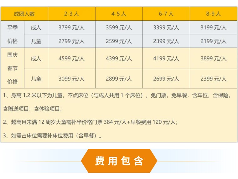 ▷身高1.2米以为儿童,不占床位(与成人共用1个床位),免门票,免早餐,含车位,含保险,含赠送项目,含体验项目;