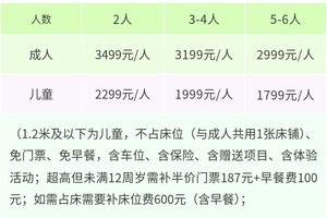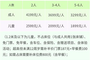 · 1.2米以下为儿童,不占床位(与成人共用1张床铺)、免门票、免早餐,含车位、含保险、含赠送项目、含体验活动;