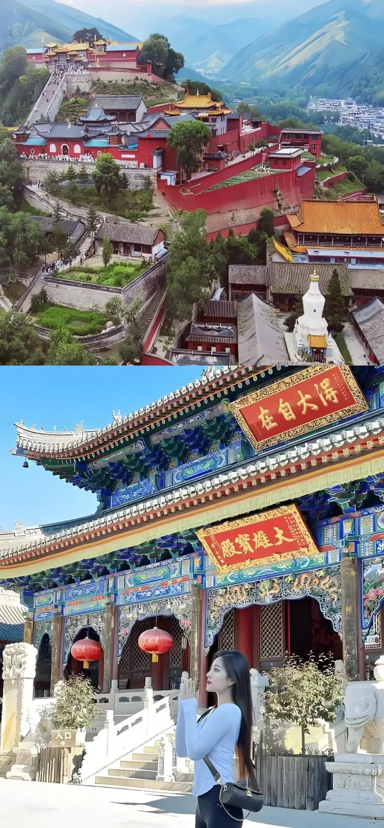 【五台山】位于山西省忻州市,景区规划面积607平方千米,行政管辖面积436平方千米。