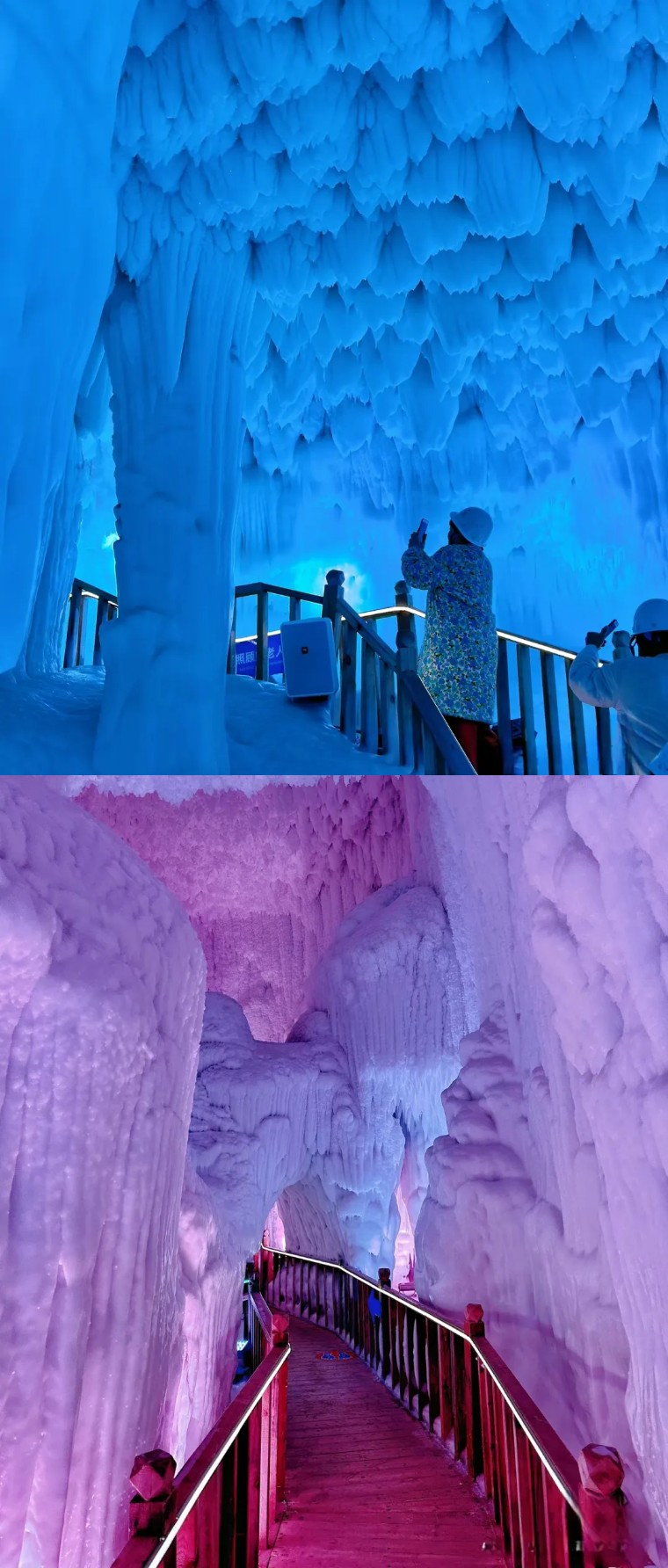 【万年冰洞】位于山西省忻州市宁武县麻地沟村西南3千米的石灰岩漏斗中。形成于新生代第四纪冰川期,距今已有300万年历史,是世界中纬度中山(海拔1000米—3500米为中山)地区最大的冰洞。