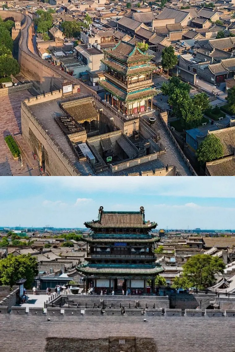 【平遥古城】位于山西省中部,始建于周宣王时期,明洪武三年(1370年)扩建,距今已有2700多年的历史。还较为完好地保留着明清时期县城的基本风貌,是中国汉民族地区现存最为整的古城。