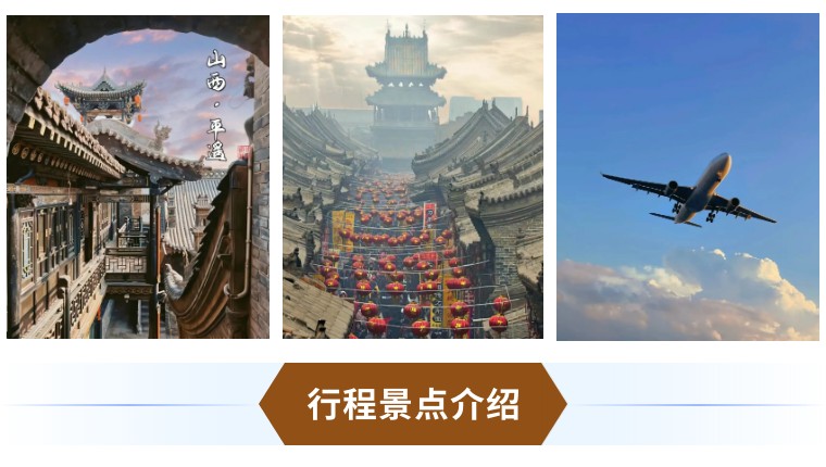 早餐之后游玩【平遥古城】,让我们穿越再古香古色的街道上,体验晋商文化,日升昌票号中国第一家银行,中华第一镖局,古城墙,县衙等等……11点半酒店集合前往太原送站。晋陕之行画上圆满句号,各自返程。