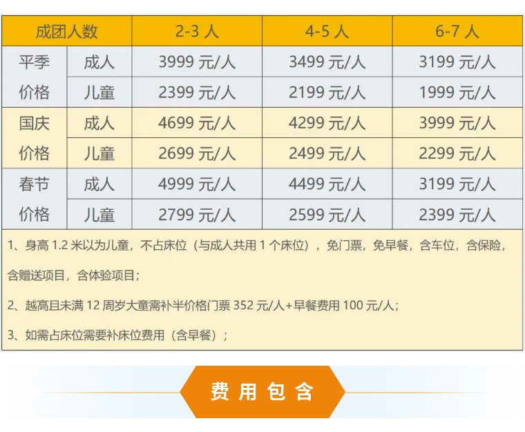 ▷身高1.2米以为儿童,不占床位(与成人共用1个床位),免门票,免早餐,含车位,含保险,含赠送项目,含体验项目;