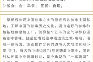 3、门票:行程内所列景点门票(芒市大金塔、大银塔、一寨两国、和顺古镇、热海景区含电瓶车、银杏村含电瓶车/高黎贡油菜花基地/火山景区3选1);