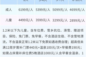 成人5199元/人,儿童3299元/人