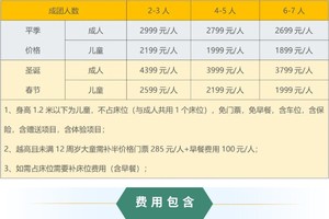 成人:2599元/人,儿童:1799元/人