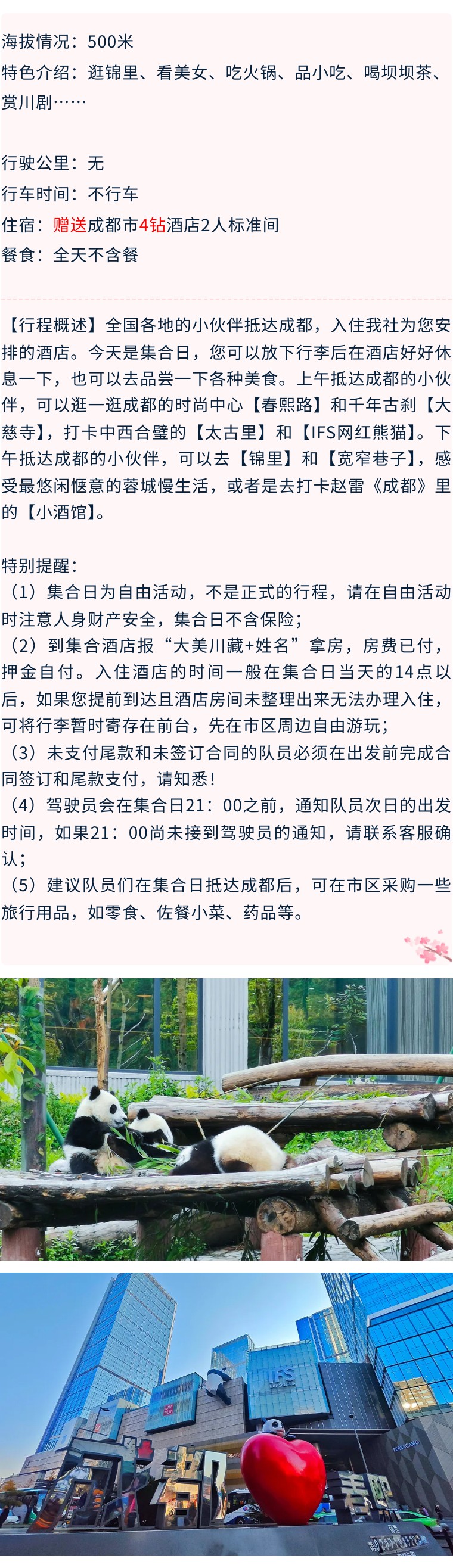 5、2人及以上报名赠成都双流机场接机/市内火车站接站(成都东站/成都南站/成都西站)1次,天府机场接机需自理费用。