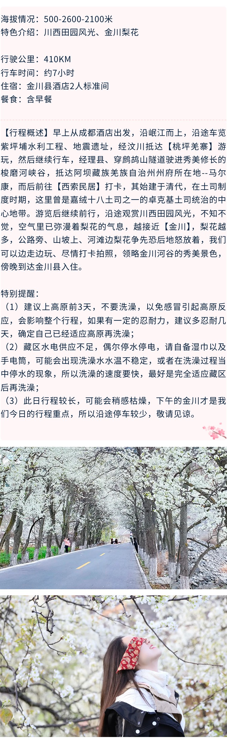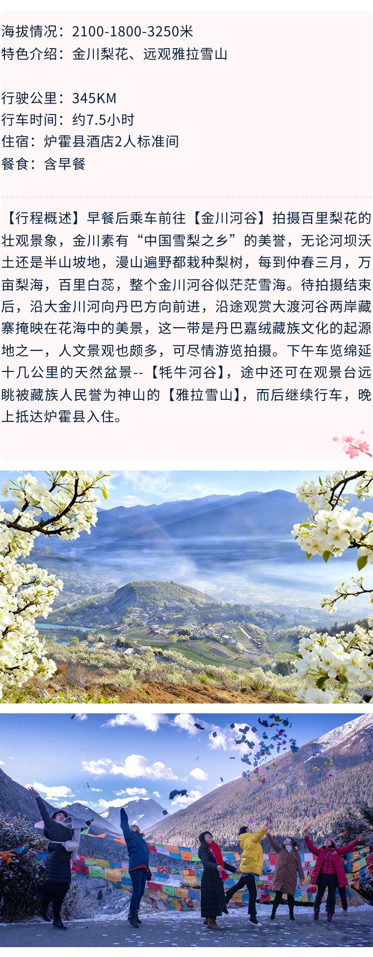 第3天:金川·百里梨花海-丹巴-雅拉雪山观景台-炉霍(收取旅游费用总额40%的损失费)