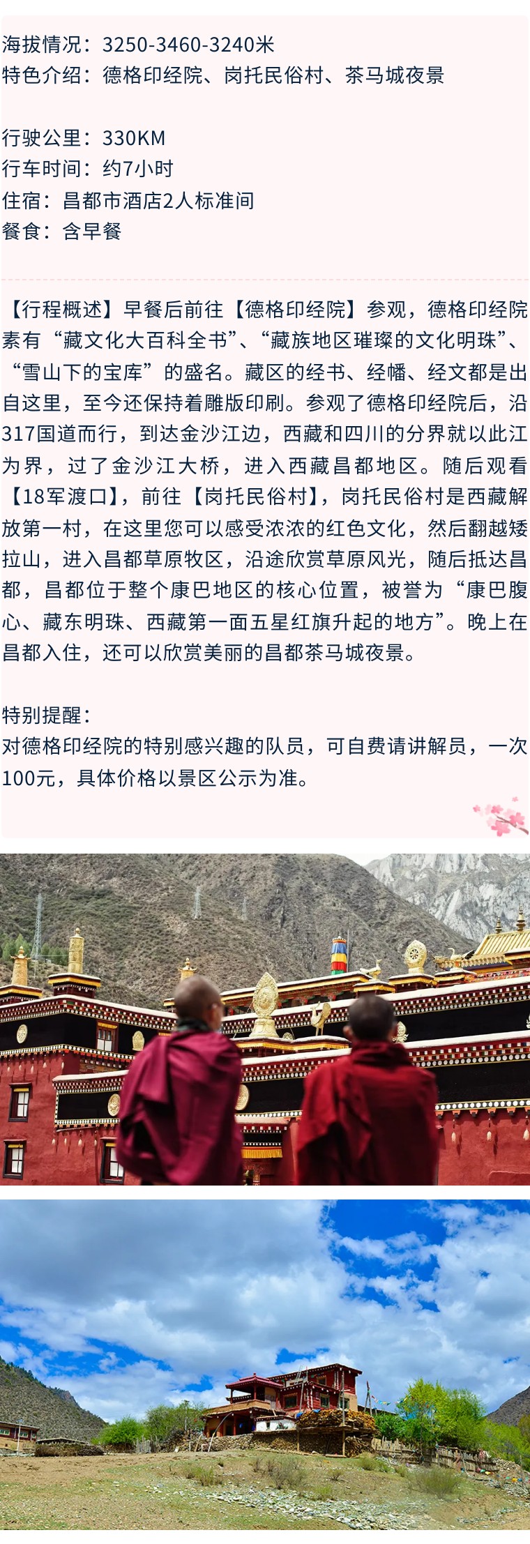 第6天:德格印经院-岗托民俗村-昌都(收取旅游费用总额70%的损失费)