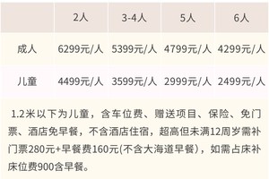 2、用餐:包含4顿早餐,大海道景区不含早。