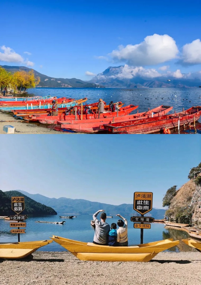 在泸沽湖,最浪漫的事就是游船。