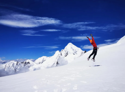 四:攀登体验感充实:途经冰岩混合,亮冰壁,刃脊,冰裂缝,雪坡,风化石等路段,充分享受雪山攀登的乐趣。