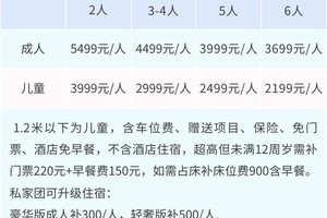 第1-3期为优惠团期,成人3699元/人,儿童2199元/人