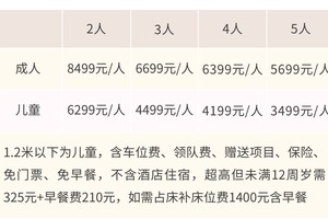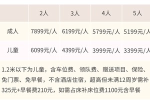 成人5599元/人,儿童3399元/人