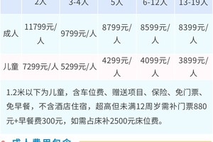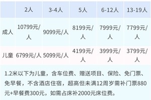 成人7499元/人,儿童3299元/人