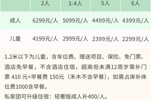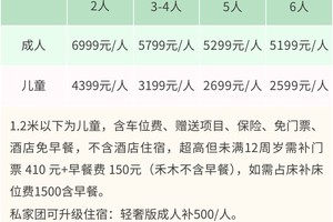 第10-15期为正价团期,成人5199元/人,儿童2599元/人