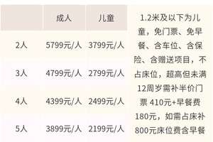 成人3899元/人,儿童2199元/人