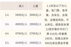 成人4199元/人,儿童2499元/人
