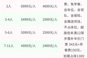 优惠团期:5月、6月、9月、10月价格(6月28日-6月30日、9月26日-10月6日期间除外)