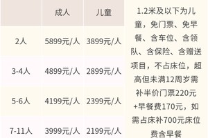 第01-02期为特价团期,成人3299元/人,儿童1699元/人