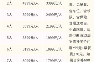 优惠团期:4月29日-5月4日、6月1日-6月27日、9月1日-9月25日