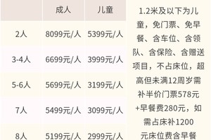 · 1.2米及以下为儿童,不占床位(与成人共用1张床铺)、免门票、免早餐、含车位、含司机服务、含保险、含赠送项目;