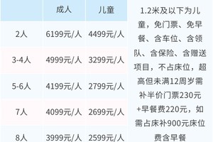 6、以上景区内不包含的自费项目价格仅供参考,景区可能有活动优惠或者涨价的可能,具体以景区当天收费价格为准