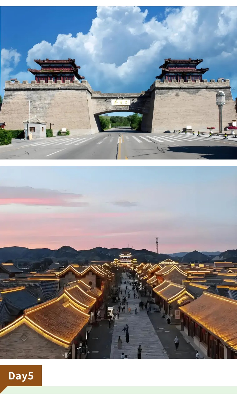 全天太原集合日,24小时接站,早到的朋友可以去太原古县城,晋祠博物馆,晚上推荐柳巷小吃街,品尝太原美食百年老店就有几十家,自由活动。