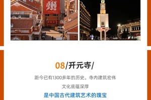 ④【开元寺】距今已有1300多年的历史。寺内建筑宏伟,文化底蕴深厚,是中国古代建筑艺术的瑰宝。