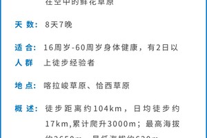 3. 本活动徒步全程约104公里,平均海拔为2000米左右,其中2620米,队友们基本不会有高原反应。