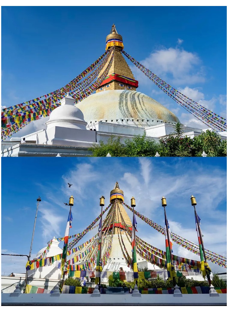 早餐后前往博达哈大佛塔 :位于尼泊尔首都加德满都东部,是世界最大的圆佛塔,也是联合国世界文化遗产。其历史可追溯至14世纪,曾多次重建。塔身共分5层,以地、水、火、风四元素表示万物的组成,在佛教中称“四大和合”。塔基外缘刻有108尊阿弥陀佛的小浮雕,白色覆钵上的方形塔四面画有巨大的佛眼,象征佛法无边。因坐落在中国西藏与尼泊尔通商的要道上,这里成为尼泊尔藏传佛教的重要圣地,被称为“小西藏”。