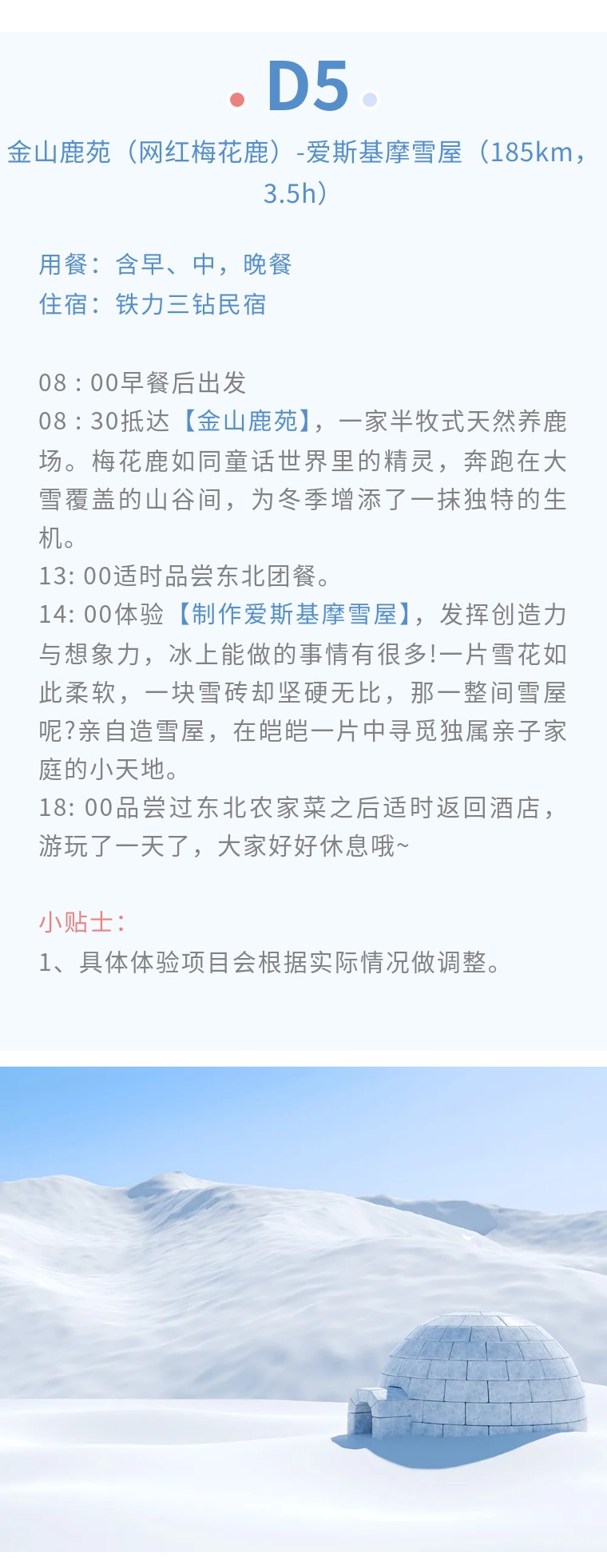 5、搭建爱斯基摩雪屋体验一次(含研学老师指导+工具)