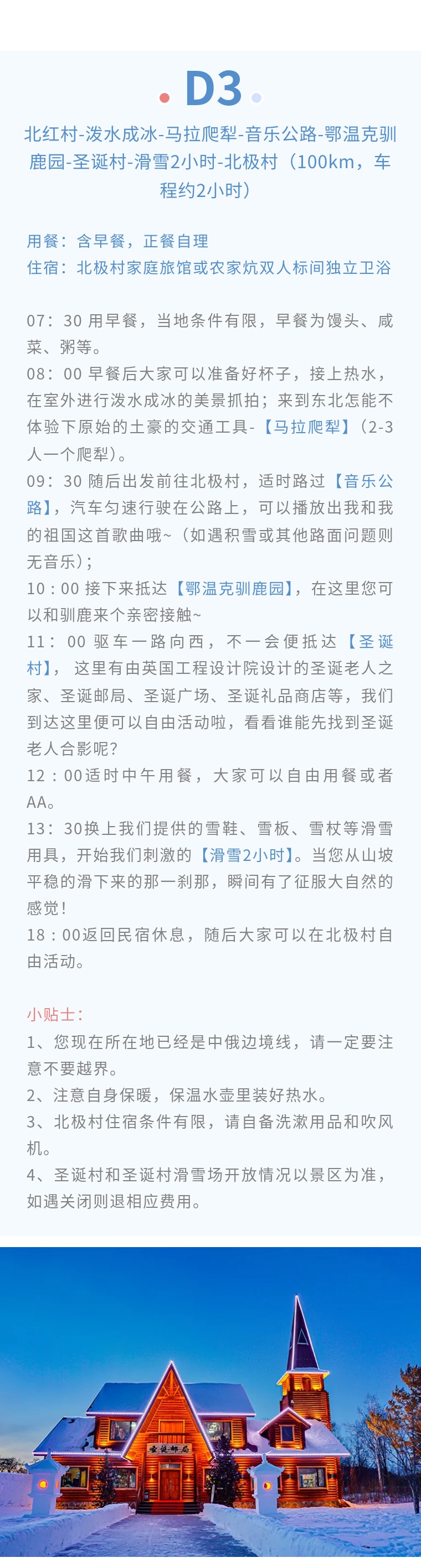 圣诞/跨年/元旦团期:漠河段2晚住宿补300元/人,补1晚哈尔滨住宿300元/人,1晚农家炕如想单住请现询客服;