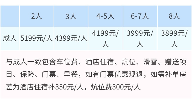 正价团期:12月7日-2月24日(不含圣诞/跨年/元旦/春节团期)
