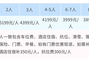 · 2人起天天发团,司机兼管家,如逢单数报名产生空床位需补单房差