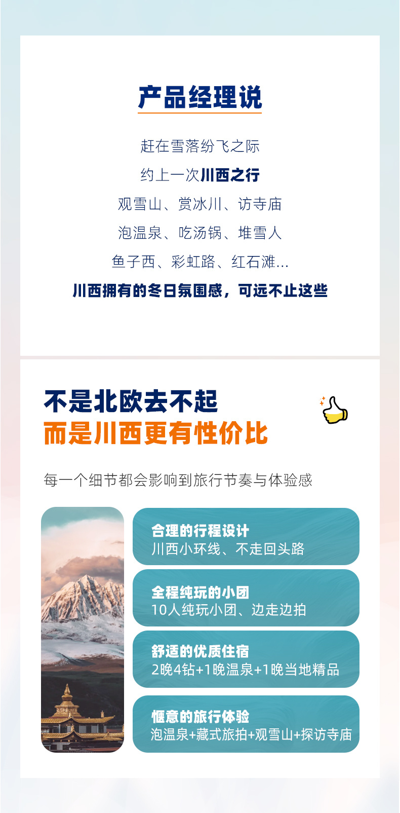冬季限定,共16期,每周五成都集合,周六出发,次周二结束,节假日略有调整。