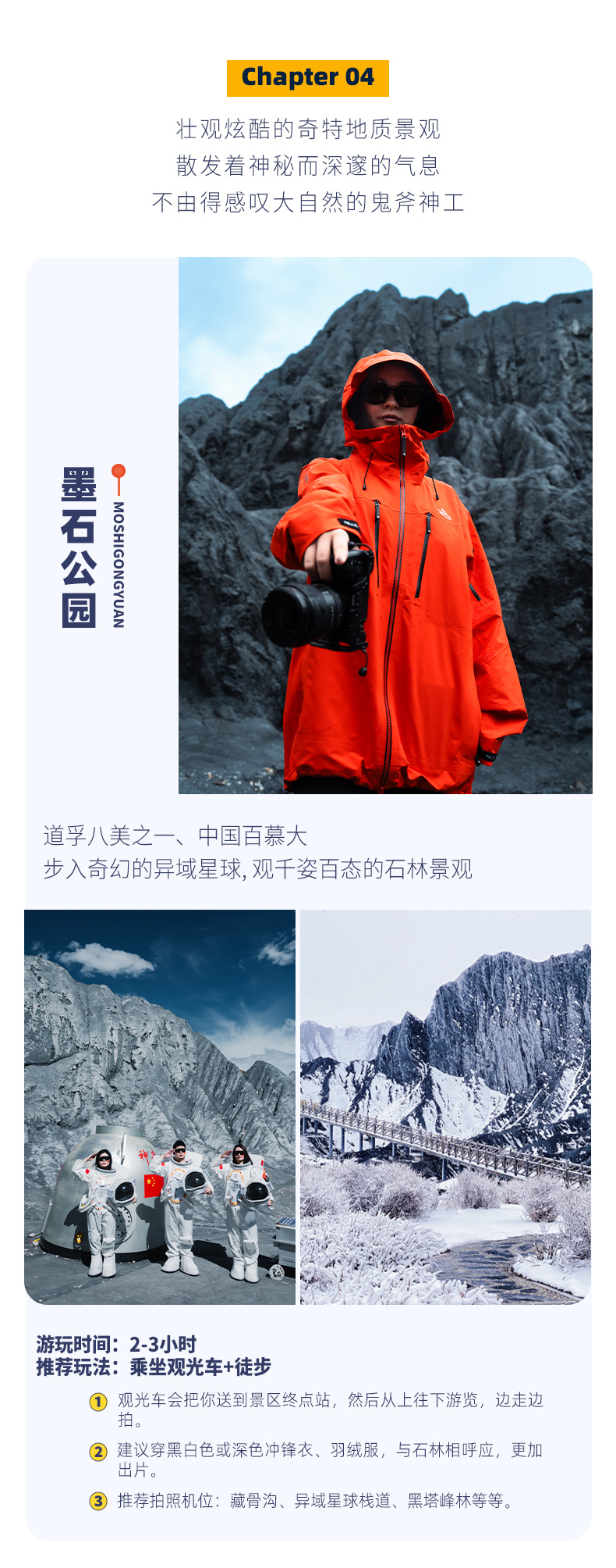 (1)服装:每年11月-3月着冬装,衣服三件套是最佳(保暖排汗内衣+抓绒衣+冲锋衣+速干衣裤);