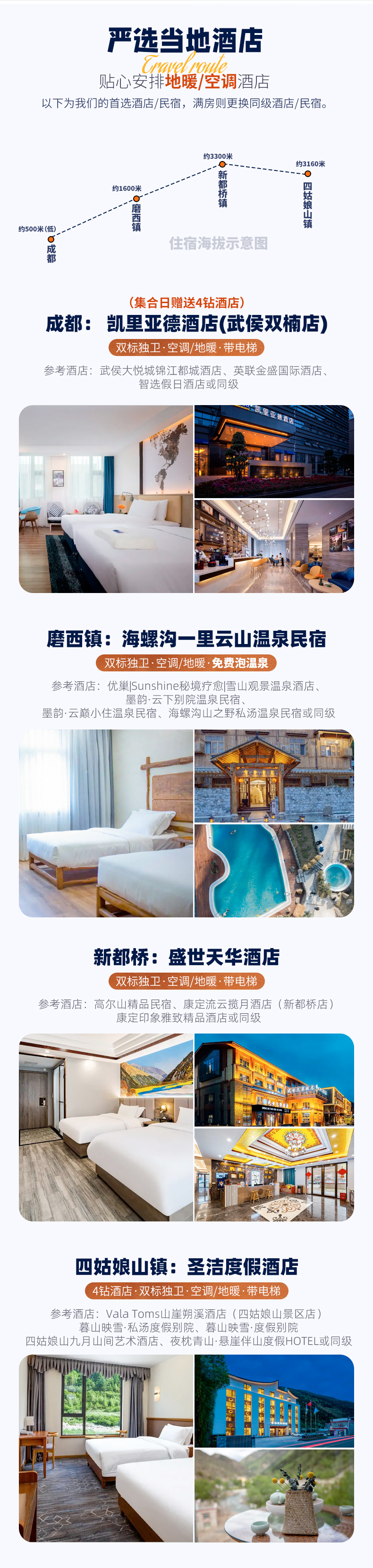 2、住宿:全程4晚地暖/空调标间住宿(含集合日1晚赠送4钻酒店、不住不退);