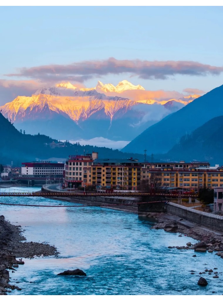 波密(海拔2720m):藏在冰川群中的“冰川之乡”,雪山环抱小城,尼洋河支流穿城而过,街头藏式建筑与雪山远景相映,是扎墨公路前的休整驿站,也是冰川与林海的交汇地。