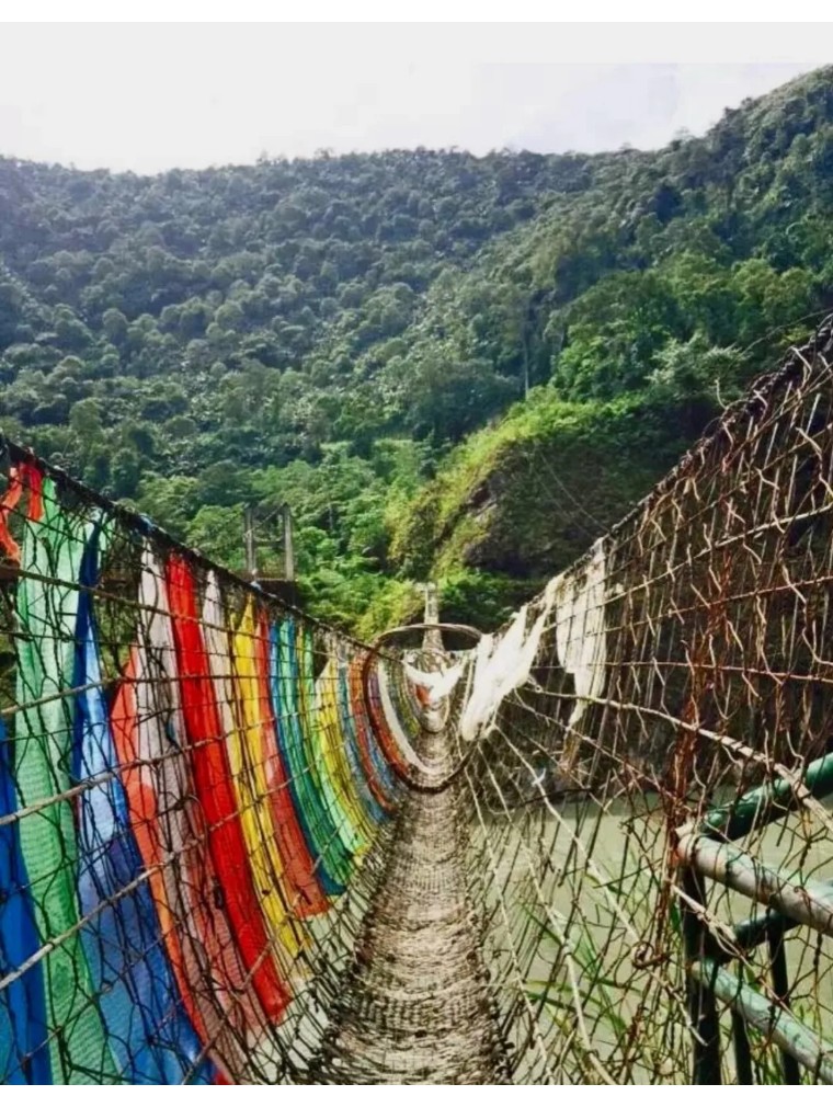 网藤桥:门巴族的古老智慧,纯藤条编织横跨江河,踩上去晃晃悠悠,脚下是奔腾江水,身旁是雨林浓绿,藏着原始秘境的独特风情。