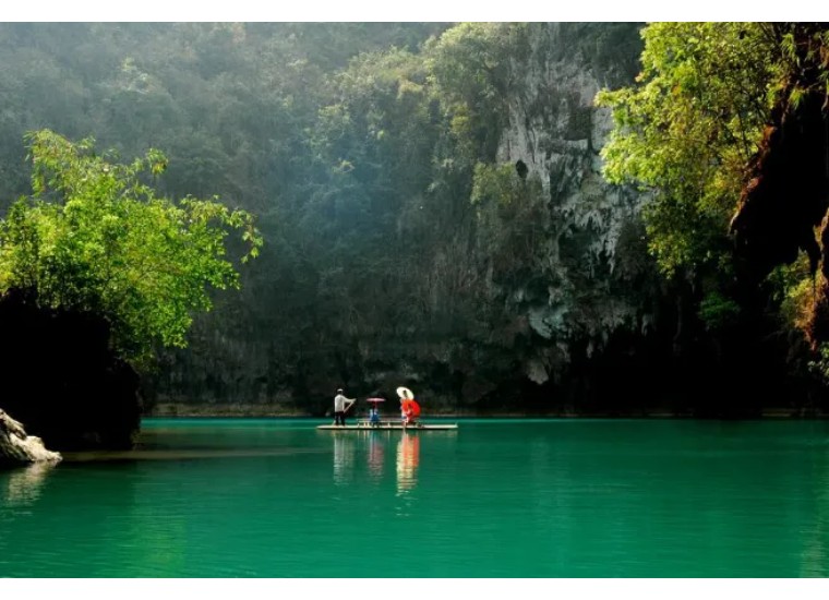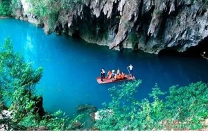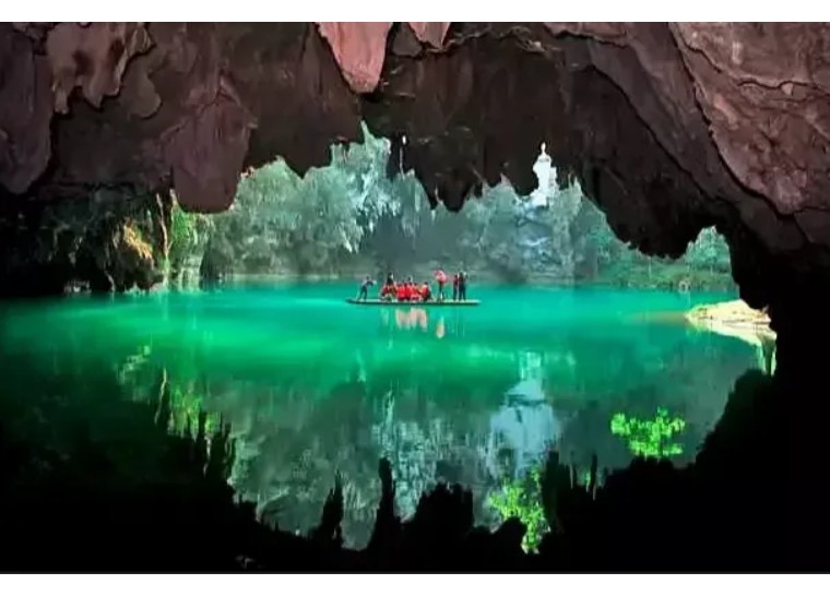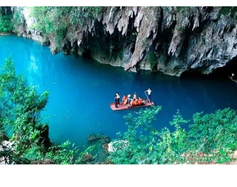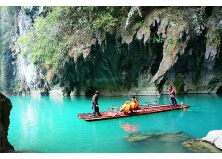 我们将乘船游穿越天坑溶洞体验世外桃源的探索之旅。