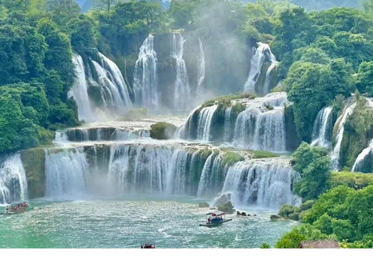 早上07点30发车,前往世界著名的亚洲第一跨国瀑布【德天瀑布】游玩,这座与越南板约瀑布相连的跨国瀑布气势磅礴,一波三折,层层跌落,曲折于参天古木间,更有花草掩映,百鸟低徊。江水忽遇断崖,飞泻直下,仰望瀑顶,群峰浮动,巨瀑如海倾,水沫飞溅,如万斛明珠。德天瀑布雄奇瑰丽,变幻多姿,碧水长流,永不干涸,中越边境清代53号界碑合影。