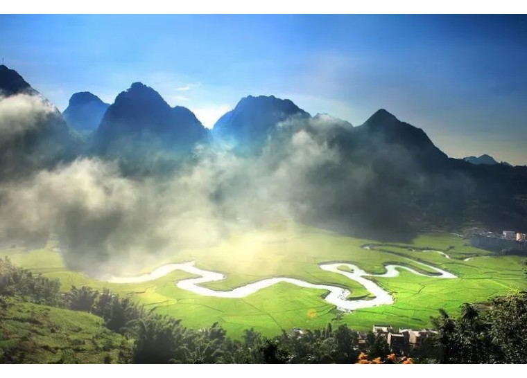 早上7点30出发,进入广西腹地,前往被誉为创世女神,南国第一峡的【姆洛甲女神峡】游玩,秀丽的姆洛甲女神峰,如同仰睡的少女,笑视白云,飘逸秀发瀑布般地垂落在水面上。