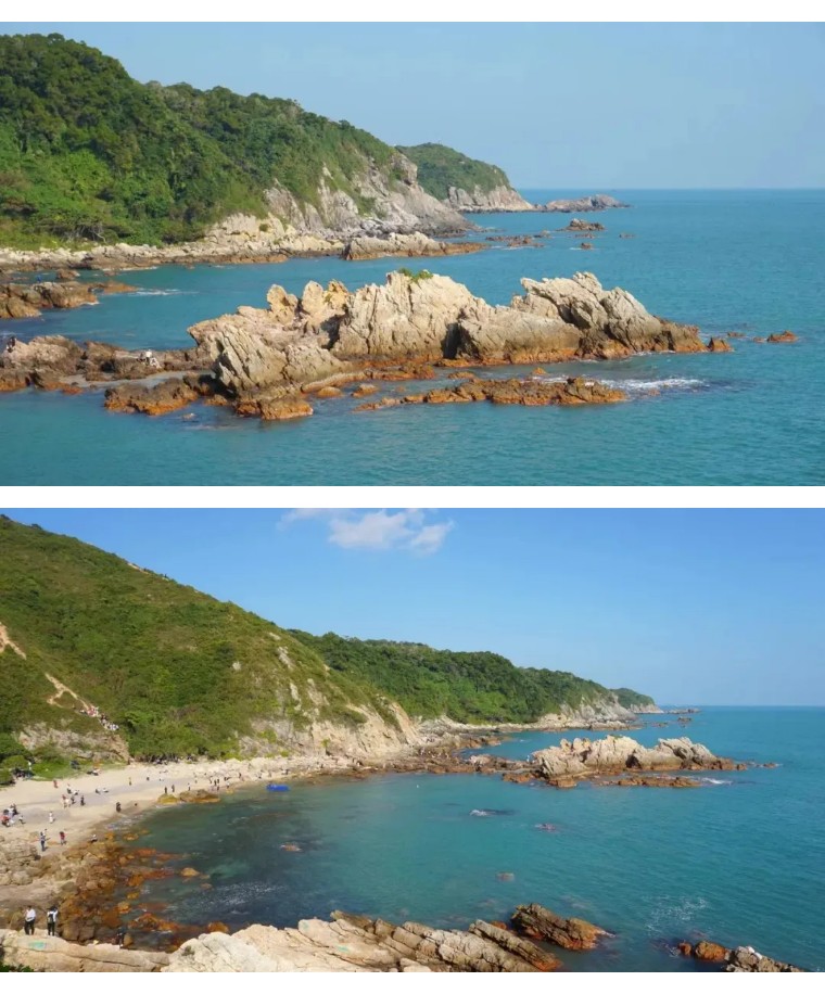 途中都是青山、碧海、沙滩、岛屿、礁石、海蚀崖、海蚀柱、海蚀台等海积海蚀地貌发育齐全,给你无敌海景。
