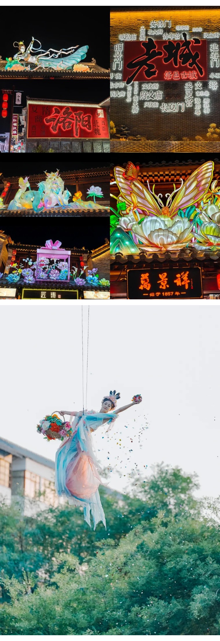 洛邑古城位于河南洛阳老城区,被誉为 “中原渡口”,国家 AAA 级景区、首批国家级夜间文旅消费集聚区,2017 年开园,免费开放。依托唐代新潭、宋代文峰塔、金元古城墙等遗址而建,核心含文峰塔(北宋始建,夜间灯光秀为亮点)、河南府文庙、妥灵宫等。以汉服文化、非遗体验为特色,“白天洛阳,夜晚神都”,集游、购、食、宿、娱于一体,是沉浸式感受千年河洛文化的热门地标。