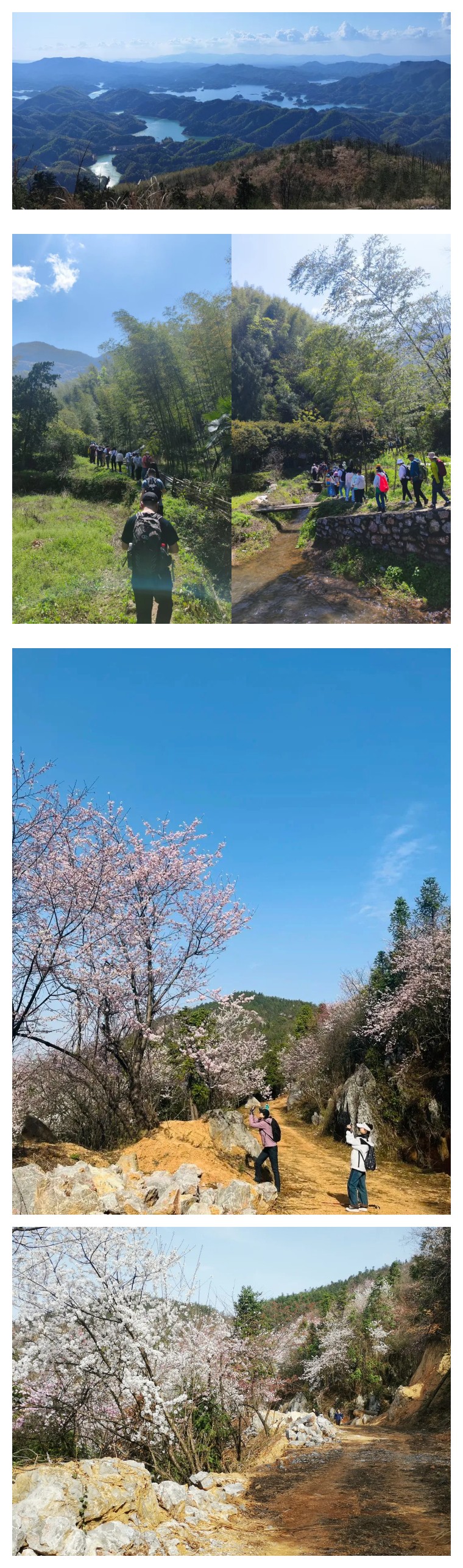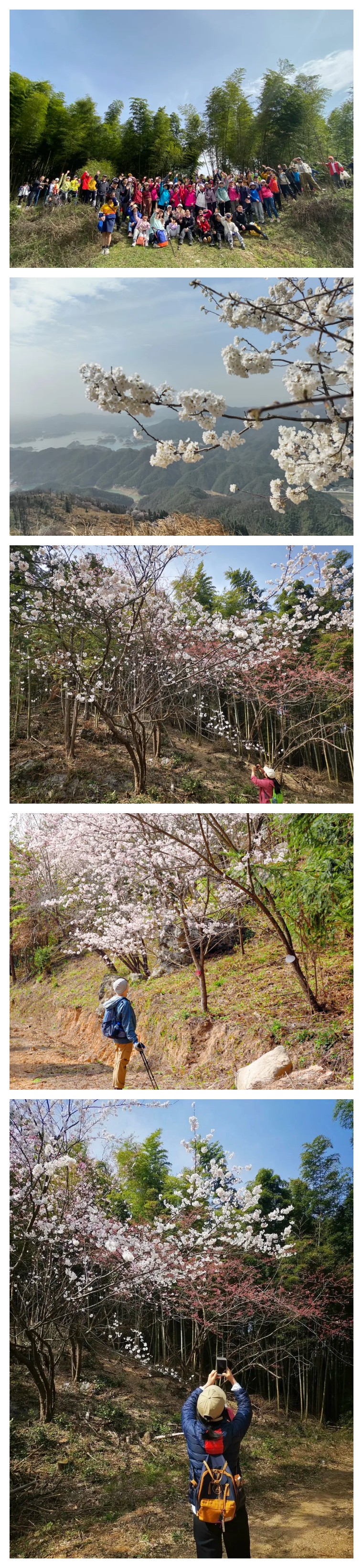 站在白崖山顶,整个山顶全部笼罩在樱花之中。从野樱谷到高家荡,形成一条完美的环形赏花之路,山顶景致,一处不落。