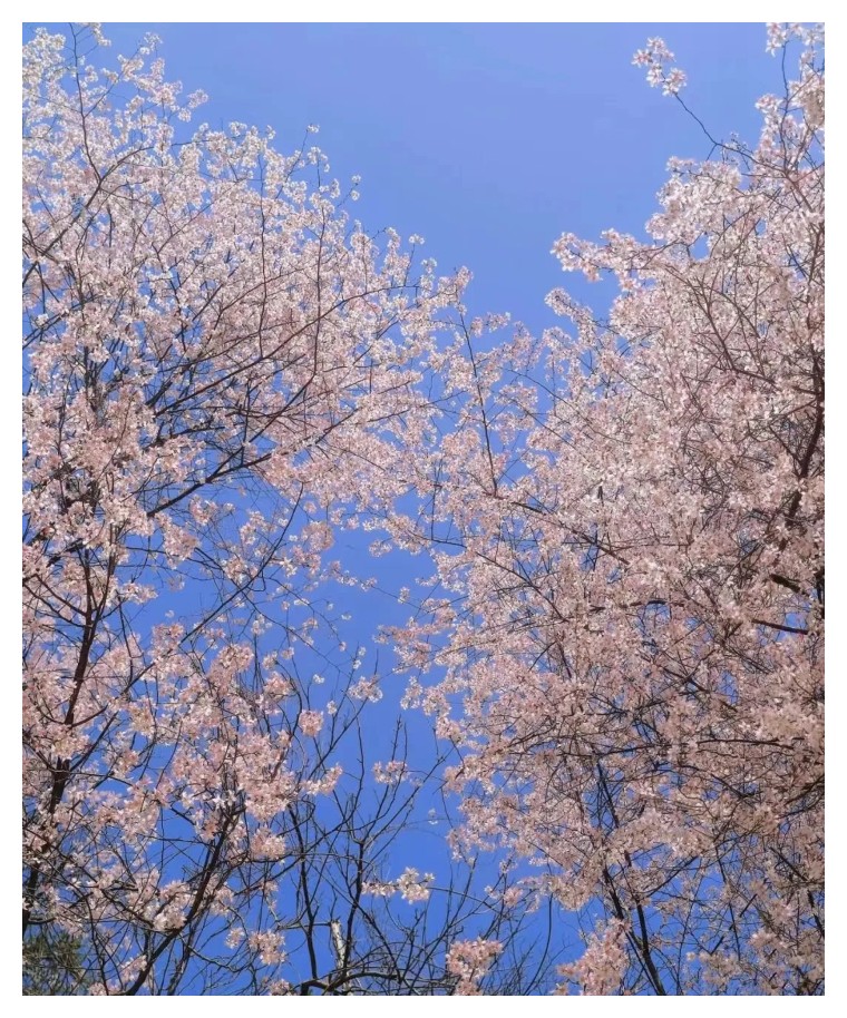 春光明媚日,正是踏春时。白崖山的樱花,大多是山间野樱,连片的野樱散发淡淡清香,粉色的花衣跳动在枝头,远看就像一团团“粉云”,这里的樱花高达数米,树冠宽绰。